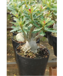 Cây Sứ Thái Ghép do Vnetmic phân phối còn được gọi là cây sứ thái hay cây sứ sa mạc. Đây là loài cây có thân ngắn, dáng mập, có màu xám xanh. Gốc cây phình to, phân cành dài mềm có thể uốn và tỏa rộng ra bên ngoài. Lá của cây chủ yếu tập trung ở đầu cành, nhẵn, gốc thuôn nhọn theo cuống, đầu mở rộng và gần tròn. Cụm hoa ở đỉnh xếp sát với lá hay trên cành rụng lá. Hoa lớn có nhiều màu như trắng, vàng, đỏ, hồng,… chia làm 5 cánh hoa, mềm mại.