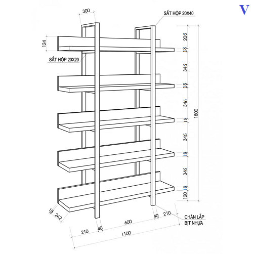 Kệ Sách Chân Sắt Mặt Gỗ GHS-234