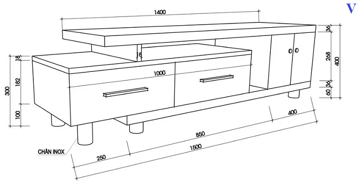 Bạn có thể chủ động trang trí theo ý tưởng của riêng mình và bên cạnh đó, cách phân chia ngăn để đồ của Kệ Tivi giúp tạo nên sự mới mẻ cho không gian nội thất phòng khách thêm hiện đại và tiện nghi hơn. Sản phẩm vô cùng độc đáo có thể co giản kích thước từ 1,5m ~2,1m đáp ứng được đa số không gian sử dụng cho nhiều phòng khách chung cư hiện đại.
