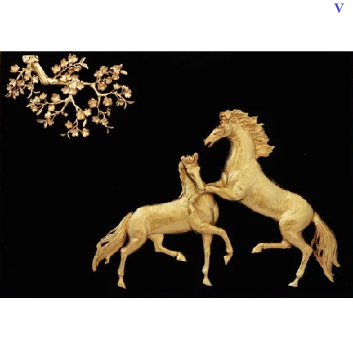 Trong phong thủy, ngựa là được xem là biểu tượng của lòng trung thành, kiên nhẫn, bền bỉ, mang lại sự may mắn, tài lộc. Hình ảnh những chú ngựa luôn đem lại nguồn tài lộc, sự phát đạt trong kinh doanh, sự nhanh nhạy và tăng tiến tiền tài, khiến những công việc dự định sẽ nhanh chóng hoàn thành hơn dự kiến và đạt kết quả cao hơn mong muốn. Hình ảnh đôi ngựa mang nguyên khí của Kim, không những đem lại tài lộc, công danh mà còn có tác dụng hóa giải sát khí.